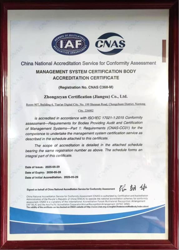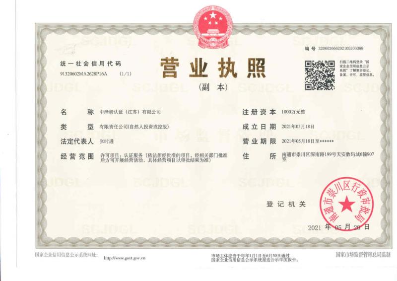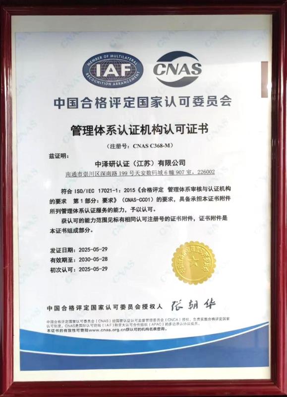 您好,欢迎您访问中泽研(江苏)认证有限公司网站!